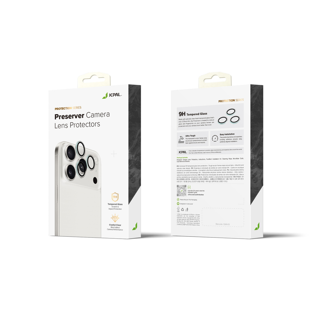 Ochrona przed uderzeniamiPreserver łączy metalową ramkę i szkło hartowane, zapewniając najwyższą ochronę obiektywu | Łatwa instalacjaZaprojektowany z myślą o bezproblemowym dopasowaniu, Preserver jest wyposażony w ramkę montażową, dzięki której można szybko i łatwo zainstalować indywidualną osłonę obiektywu aparatu do iPhone'a